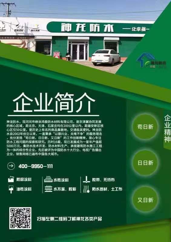河間崢涂鴻泰防水材料有限公司主要生產(chǎn)丙綸布、滌綸布、瀝青膠泥等各種防水材料、產(chǎn)品質(zhì)量可靠、技術(shù)先進,專業(yè)貼心服務(wù),值得信賴。