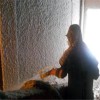 五、噴涂中修整突出不均勻部分,使用工具進行表面整形。
