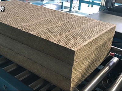 產(chǎn)品切割后經(jīng)高風(fēng)吹渣后平行重疊,使其達到包裝厚度,經(jīng)全自動熱縮包裝機,把巖棉板整體包裝,經(jīng)過熱收縮機使包裝收縮,冷卻后由成品運輸車運輸至成品庫存放。