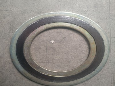 目前應(yīng)用最廣泛的一種密封墊片,為半金屬密封墊片中回彈性最佳的墊片,由V形或W形薄鋼帶與各種填充料如:石墨,四氟等交替纏繞而成。通過改變墊片的材料組合,可解決各種介質(zhì)對墊片的化學(xué)腐蝕問題。為加強主體和準(zhǔn)確定位采用金屬內(nèi)加強環(huán)和外定位環(huán)形式,利用內(nèi)外環(huán)來控制其最大壓緊度起到加強的作用并避免基本體的散圈,由于外環(huán)的存在使得墊片安裝起來更加方便。