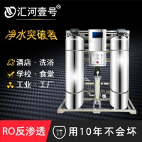 采用反滲透技術(shù)進行脫鹽處理,反滲透膜孔徑僅為0.0001微米,能去除有害的可溶解性固體及細(xì)菌、病毒等 ,脫鹽率達(dá)96%以上,主機部分包含保安過濾器、高壓泵和反滲透膜,保安過濾器為以上的第四級預(yù)處理系統(tǒng),高壓泵是主機上的核心設(shè)備之一,為反滲透膜元件提供足夠的壓力,以克服滲透壓及運行阻力,滿足裝置達(dá)到額定的出水量。以上過濾后的水就可以直接飲用,過濾后的水也是純凈水。