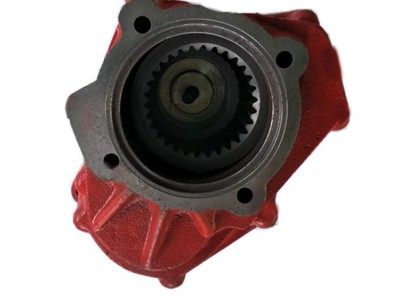 側(cè)取力器系在變速箱側(cè)取力窗口通過(guò)變速箱中間軸上的高擋齒或倒擋軸上的倒擋齒取力。在汽車取力器中使用最為廣泛。 總體結(jié)構(gòu):有一軸式、兩軸式、三軸式、帶副箱式、單操縱雙輸出式和雙操縱雙輸出式等幾種形式。其中以兩軸式結(jié)構(gòu)最為普遍;一軸式結(jié)構(gòu)最為簡(jiǎn)單;三軸式主要用于輸出有雙速異向用途的取力器,如越野車絞盤取力器;也有原為一軸式或兩軸式后為改變輸出軸旋向而增加一軸新成為兩軸式或三軸式;帶副箱式主要是在原取力器基礎(chǔ)上進(jìn)一步增速或減速,以擴(kuò)展其使用性能;單操縱雙輸出式的兩輸出可同軸也可不同軸,但由同一操縱機(jī)構(gòu)同時(shí)控制;雙操縱雙輸出式的兩輸出可同軸也可不同軸,但由不同的操縱機(jī)構(gòu)獨(dú)立控制。