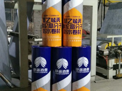 高分子聚乙烯丙(滌)綸防水卷材是采用聚乙烯、高強(qiáng)丙(滌)綸無紡布、紫外線隔光劑、抗老化劑等高分子原料,由自動(dòng)化生產(chǎn)線一次性擠出成型加工制成。卷材中間層是防水層和防老化層,上下兩面是增強(qiáng)粘結(jié)層,牢固、可靠、無翹邊、無空鼓、雙層防水,是一種新型的防水材料。