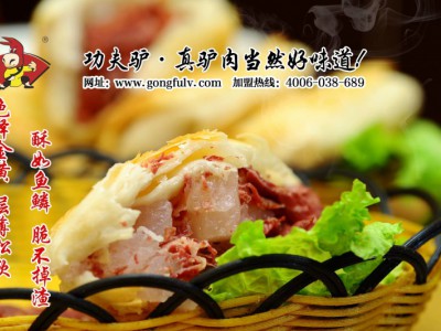 后來小德張去世將店面交給他的得力伙計(jì)張實(shí)誠經(jīng)營,張實(shí)誠老后又將店傳給徒弟張子華,張子華聰敏好學(xué),人品一流,當(dāng)時(shí)在尊祖莊一帶流傳著一個(gè)誠信的故事:張家的油不稱李家的錢不數(shù)。這是西城固莊一個(gè)李姓人家經(jīng)常來張子華的店里買驢油,每次都是提前把油裝好,李家來拿油放下錢就走,張子華也不數(shù)是多少錢就放進(jìn)錢箱,張家的油從來不會(huì)缺斤短兩,李家也從來不會(huì)少給錢,長期以來形成信任,后來張家李家還做了親家。除了誠信經(jīng)營張子華在制作工藝上也摸索出了很多前人沒有嘗試過的方法。以前沒有冰箱,加工出來的驢肉無法長期保存,夏天賣不掉一天就壞了,只能扔掉,這樣無形中就增加了很大的成本。張子華在地里采來野麻(野麻是北方很常見的一種草本植物,麻繩提豆腐中的麻繩就是用野麻的皮做的)的葉子把加工好涼透的驢肉包好,外面用麻繩系住,然后放到七八米深的地窖里,這樣就可以保存七八天不會(huì)變質(zhì),沒想到這種包裝還有一種神奇的效果,經(jīng)過野麻葉子包裹幾天的驢肉味道更加鮮美清香,成功的解決了儲(chǔ)存問題開店就輕松多了。1937年日本鬼子入侵,尊祖莊一帶尤為嚴(yán)重,建了好多炮樓,鬼子們吃過驢肉火燒也愛上了這一口,后來地下黨漸漸打出了名聲,鬼子兵平常不敢出炮樓,就讓張子華給送到炮樓里面去,張子華天生膽小,打雷天都不敢去關(guān)窗戶,哪里敢去鬼子的炮樓,和地下黨接觸后,在他們的鼓勵(lì)下才為了民族大義開始頻繁的進(jìn)出鬼子的活動(dòng)地送驢肉火燒,給地下黨傳遞出很多有價(jià)值的情報(bào)。解放后張子華五個(gè)兒子都相繼有了不錯(cuò)的工作,這個(gè)驢肉火燒店一直找不到合適的接班人。直到2006年3月,張子華之孫張海濤先生接手經(jīng)營驢肉火燒店,張海濤以老店祖?zhèn)骷夹g(shù)為基礎(chǔ),結(jié)合現(xiàn)在科學(xué)飲食制作經(jīng)驗(yàn),獨(dú)創(chuàng)十九種特殊制作工藝,從驢的宰殺、驢肉的處理、驢肉的煮制、面粉的選用、和面的技巧,火燒的檊制、香燜的制作、湯汁的調(diào)制無不精益求精。為達(dá)到更科學(xué)的管理和發(fā)展,2008年張海濤成立了河北瀛韻留香管理有限公司。并注冊了一個(gè)時(shí)尚的品牌“功夫驢”以打入各大中城市市場,幾百年的發(fā)展完善,從只為果腹的廉價(jià)“大火燒加驢肉”一直發(fā)展到如今擁有工業(yè)化流程,標(biāo)準(zhǔn)化操作的現(xiàn)代化股份公司。功夫驢視質(zhì)量如生命,從驢源的選擇、火燒加工、出品的時(shí)間,都設(shè)置了規(guī)范流程,確保了品質(zhì)的安全和統(tǒng)一。功夫驢卡通造型活潑、可愛,擺出中國功夫Pose的小驢,既彰顯出中國傳統(tǒng)文化又寓意功夫驢驢肉制作的精細(xì)繁雜和功夫驢驢肉的非凡功效。背景的折扇,體現(xiàn)了文化、傳統(tǒng)和高貴。剛勁瀟灑的毛筆字加上印章更將中國的傳統(tǒng)精髓體現(xiàn)的淋漓盡致。“做地道中國味道”是功夫驢得以生存發(fā)展的根本,在制作過程中一個(gè)人要熟練的把十六七斤活好的面粉搟片、抹油、抻長、卷?xiàng)l、揪劑、兩面包皮,烙制、烘烤、出鍋、加肉,一次做出一百多個(gè)火燒,可謂一絕。