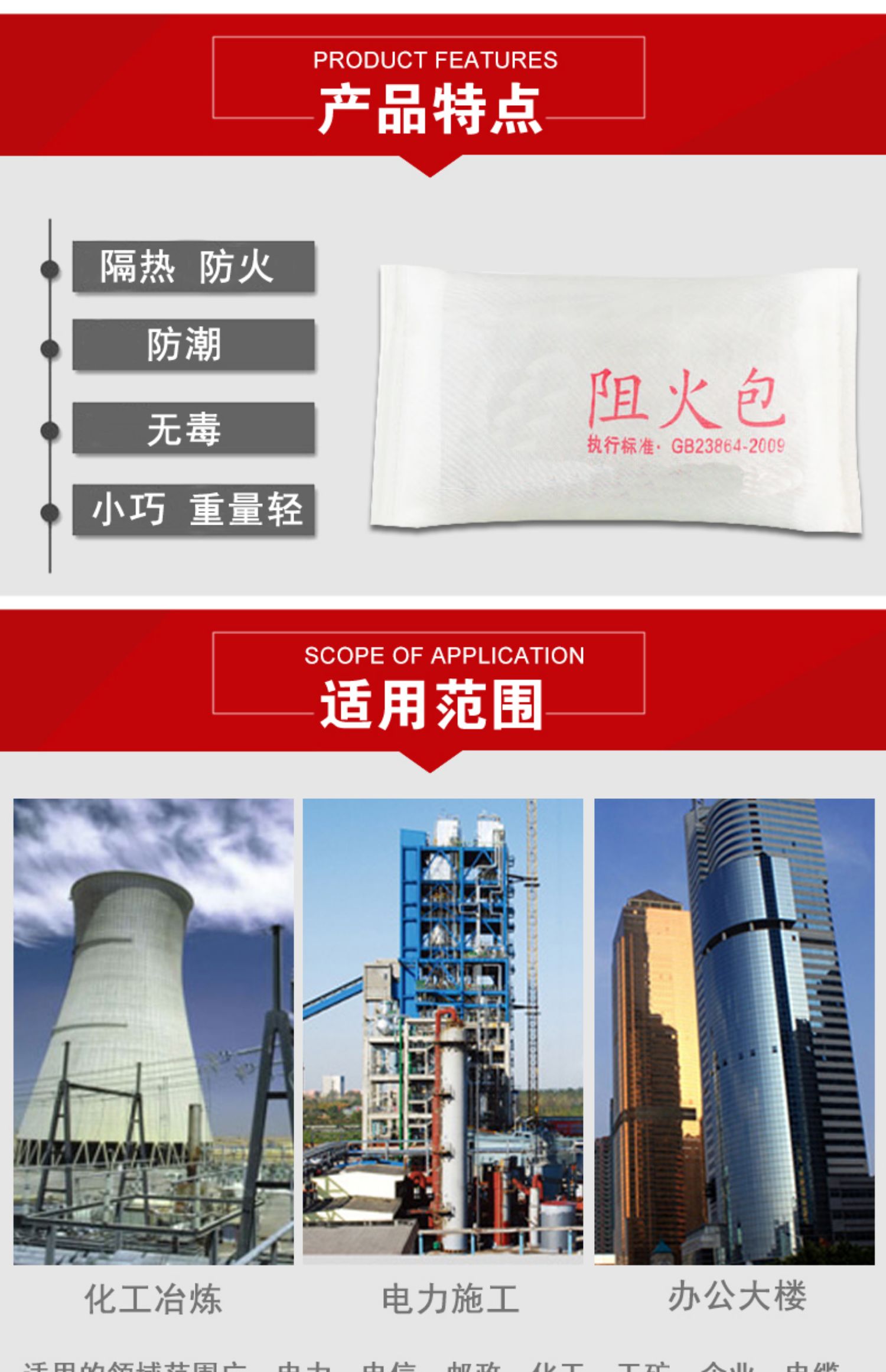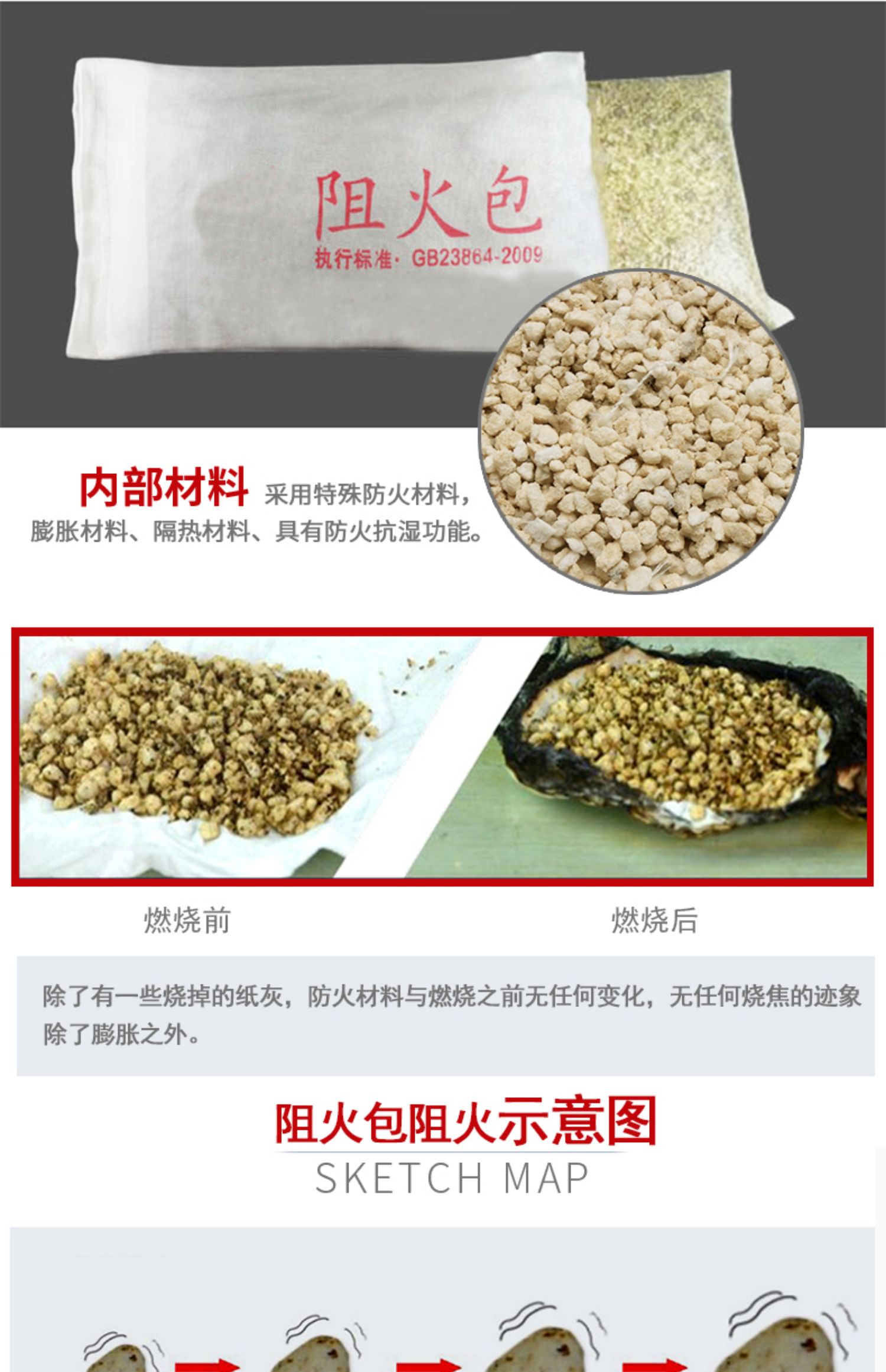 防火包外部編制密實 玻璃纖維布袋包裝 內(nèi)部填充耐火、隔熱材料