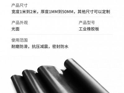 橡膠板可廣泛用于建筑行業(yè)、交通行業(yè)及房屋地面、水利工程、工程機械等方面。橡膠板也可用作密封膠圈、膠墊、門窗封條和鋪設(shè)工作臺及地板。